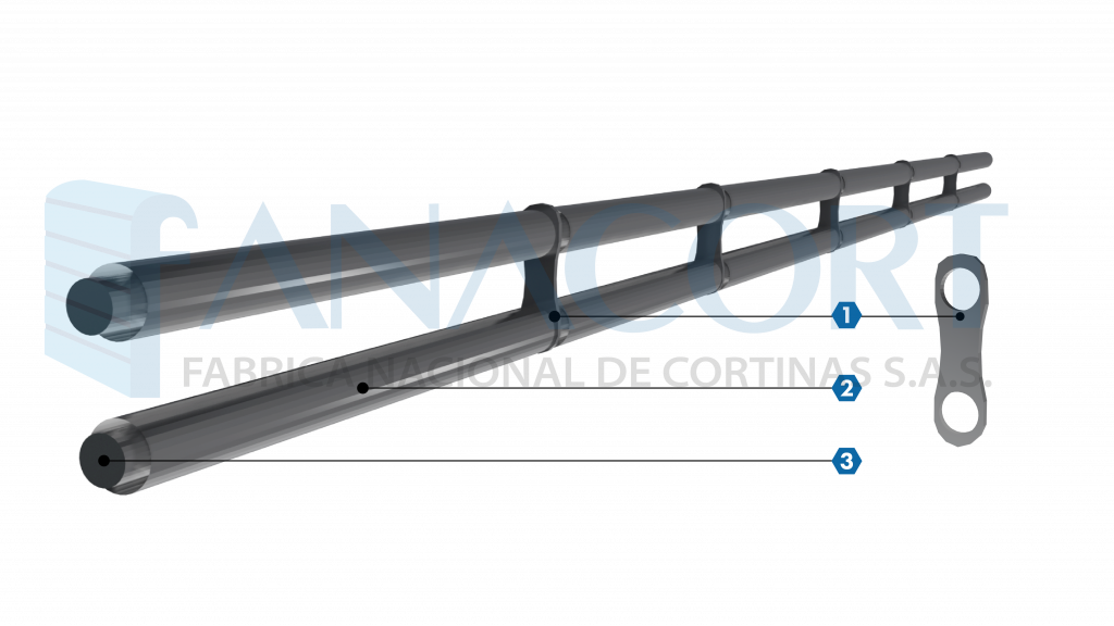 Esta platina compone la estructura del cuerpo de la cortina a nivel vertical, su función es separar un tubo interno del otro y mantenerlos fijos.