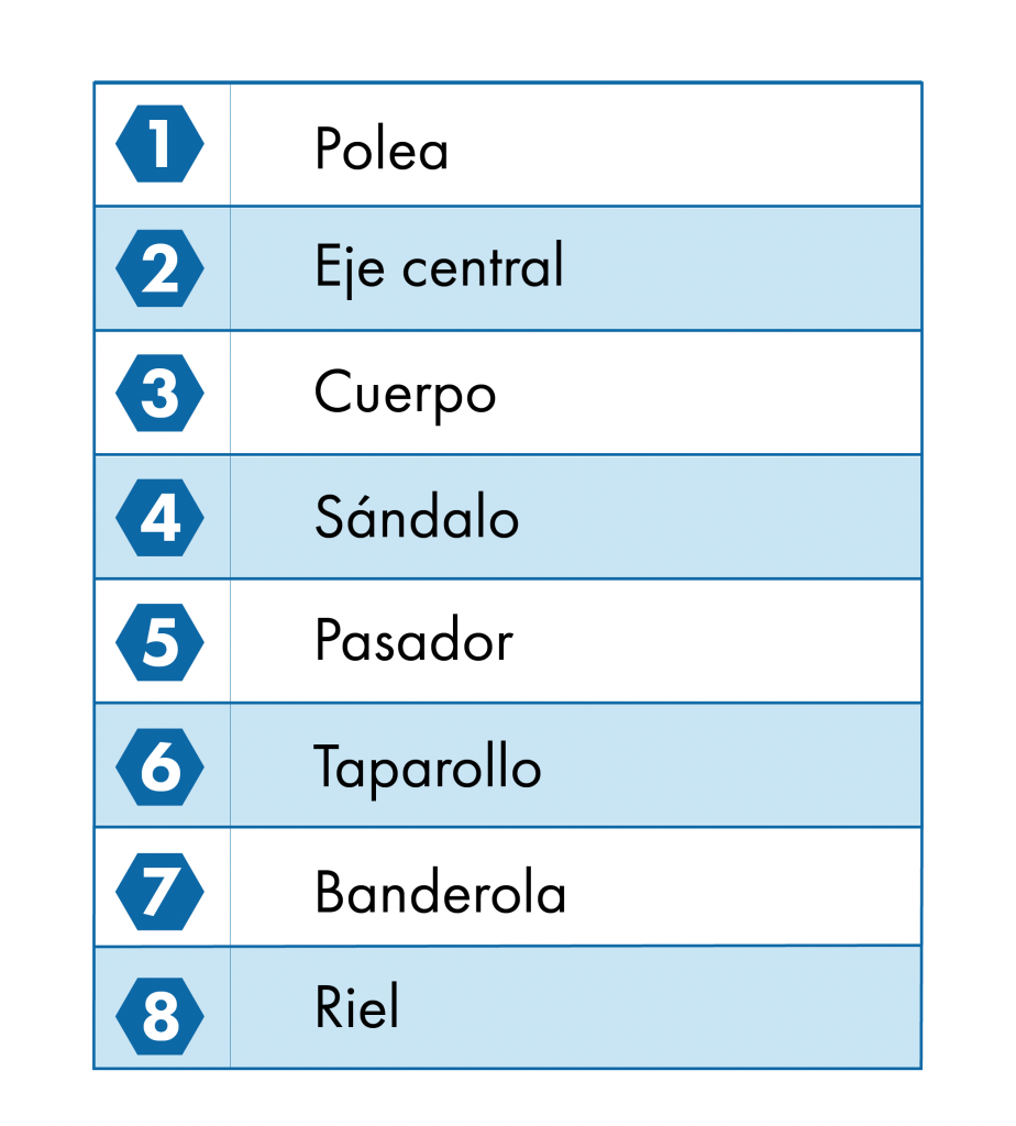 En este apartado se muestran los componentes básicos de la cortina, los demás componentes varían dependiendo del tipo de accionamiento que elijas para tu cortina. Estos serán mostrados en el apartado de mecanismos de accionamiento.