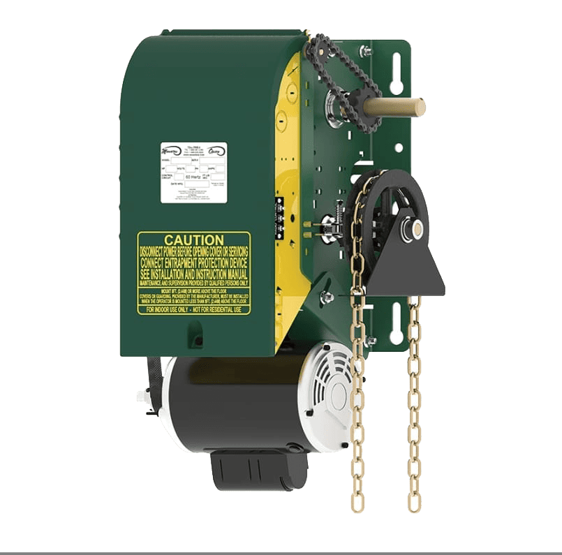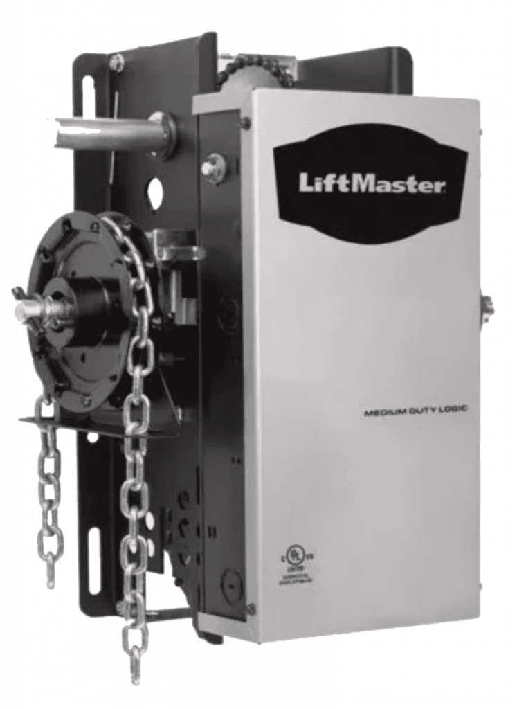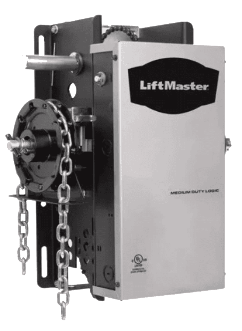 Para cortinas metálicas de uso moderado en entornos industriales, el motor LiftMaster es una opción confiable que se adapta a cualquier tamaño. Su operación principal es a través de una botonera, y para mayor comodidad, se puede integrar un control remoto como accesorio.